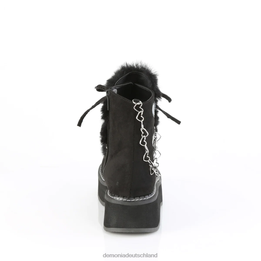 2 Zoll (51 mm) Plateau-Stiefelette mit D-Ring-Schnürung vorne, pelzbedeckter Zunge, kontrastierenden Herzapplikationen und hängenden Herzkettendetails, Reißverschluss innen aus Metall