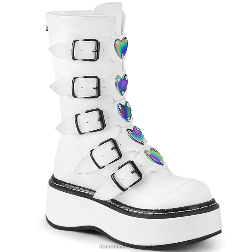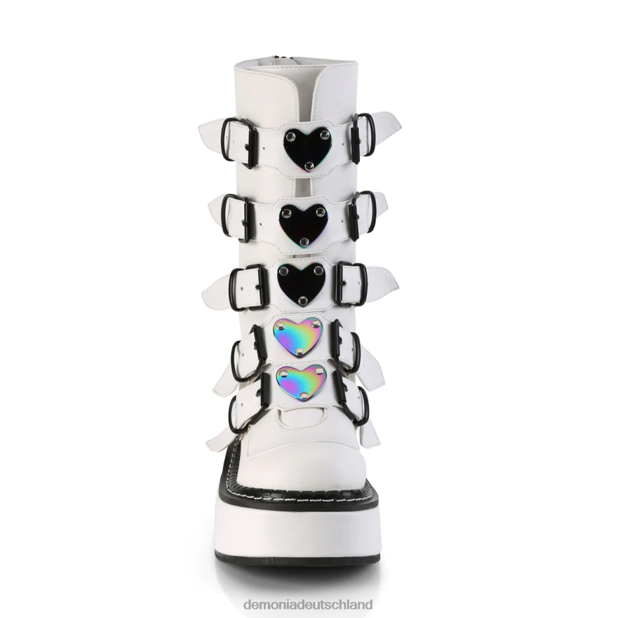 2-Zoll (51 mm) Plateau-Stiefel in der Mitte der Wade mit 5 Schnallenriemen mit bunt beschichteten, herzförmigen Metallplatten in der Mitte, Metallreißverschluss hinten