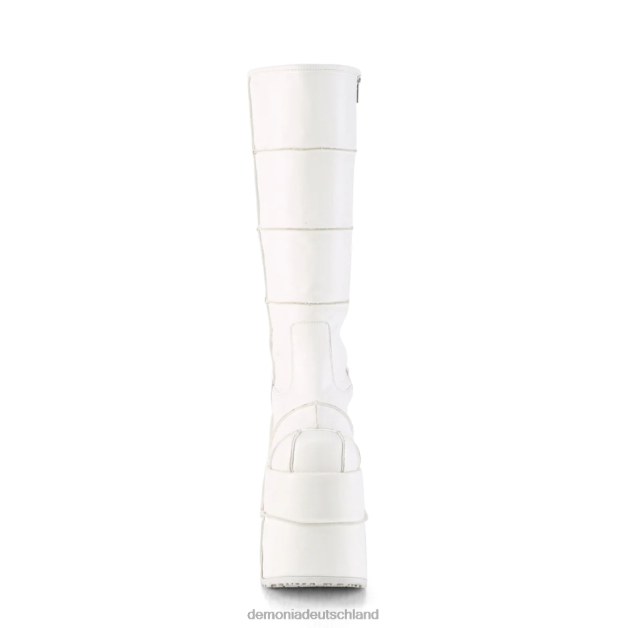 Kniehoher 7-Zoll-Stiefel (178 mm) mit aufgesetzten Details auf Plateau und Vorderblatt und Metallreißverschluss an der Innenseite.