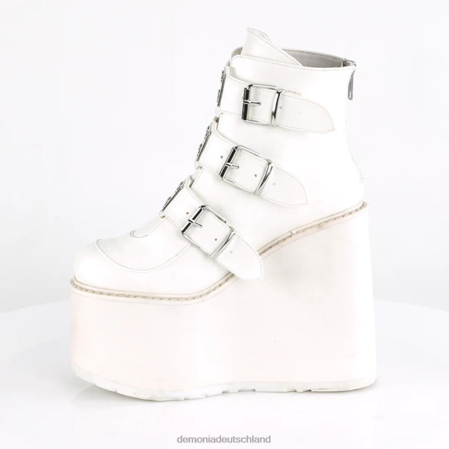 5 1/2 Zoll (140 mm) Plateau-Stiefelette mit Keilabsatz und dreifachen Schnallenriemen mit silberverchromten Metallplatten in der Mitte, Metallreißverschluss hinten