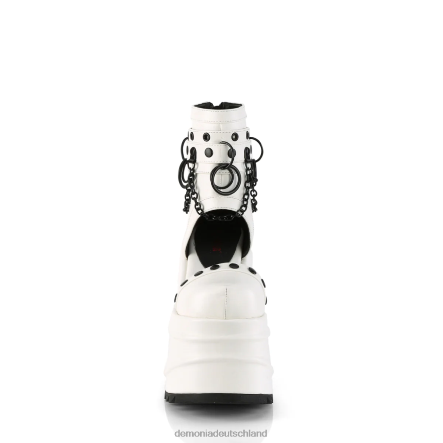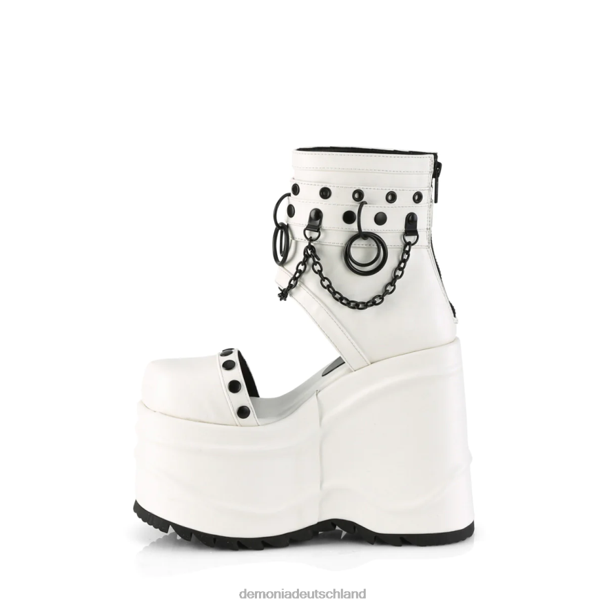6-Zoll (152 mm) Stiefeletten-Sandale mit Keilabsatz, Knöchelausschnitt, Nieten, D-Ringen, O-Ringen in verschiedenen Größen und hängendem Kettendetail sowie Metallreißverschluss an der Rückseite