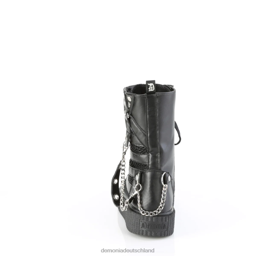 1 1/2 Zoll (38 mm) Plateau-Gummisohle, runde Zehenpartie, Schnürung vorne in der Mitte der Wade, Creeper-Sneaker-Stiefel mit gestreiften, kontrastierenden Seiteneinsätzen und genieteten Trageriemen- und Kettendetails, durchgehender Metallreißverschluss an der Innenseite